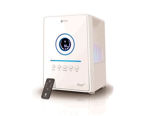 Для качественного увлажнения воздуха в помещении может подойти многофункциональный прибор Royal Clima (Роял Клима) RUH-A350/5.5E-WT, который имеет изящный дизайн, до мельчайших деталей продуманный итальянскими дизайнерами.  Устройство не только сочетает в себе функции увлажнителя, ионизатора и очистителя воздуха, но и может служить отдельным декоративным элементом — светильником.
