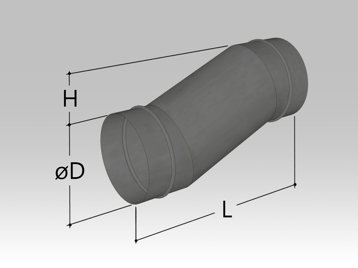 В случае, если воздуховоды на объекте невозможно разместить по прямой линии и необходимо сместить коммуникацию в сторону, используются специальные изделия S-образной формы - утки. Для заказа утки круглого сечения нужно выбрать ее параметры: диаметр, длину и размер смещения.