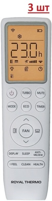 Royal Thermo (Роял Термо) RTFMO-27H3N8/RTFMI-09HN8/white*3 – это модель инверторной мульти-сплит системы, внутренние блоки которой устанавливаются в трех комнатах, общей площадью 75 м2. Имеет 4 режима работы, современные функции. Подходит для монтажа в квартирах, коттеджах, частных домах или офисах. В комплект поставки входит 3 пульта ДУ и крепежные элементы для них.